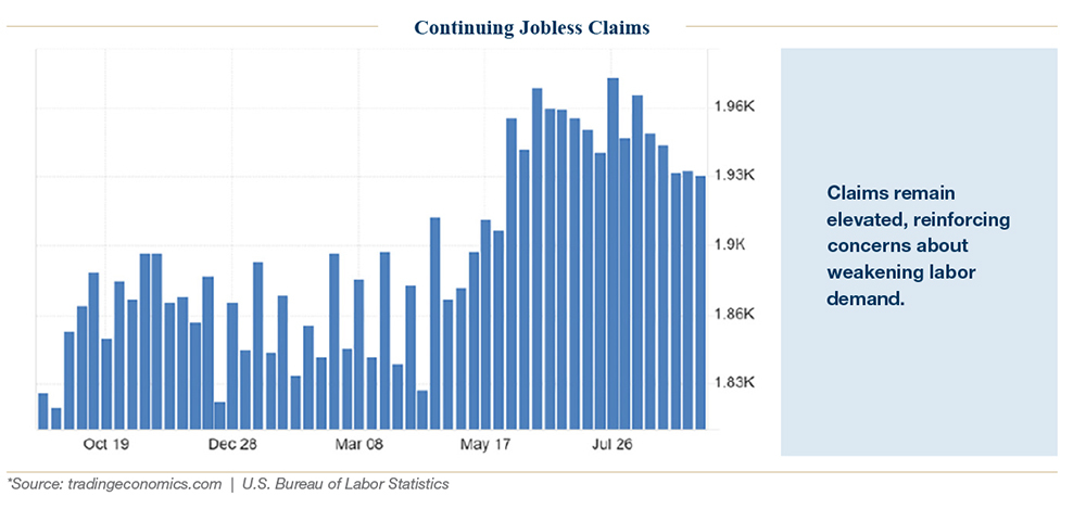 Jobless claims climbed to 263,000 in early September, the highest in two years, before easing back later in the month. Continuing claims remained steady at around 1.9 million. Wages grew at a steady but slower pace. These developments were modest cracks, not a collapse, but they signaled a clear cooling trend. Labor, once the bedrock of the post-pandemic expansion, became the primary source of uncertainty.
