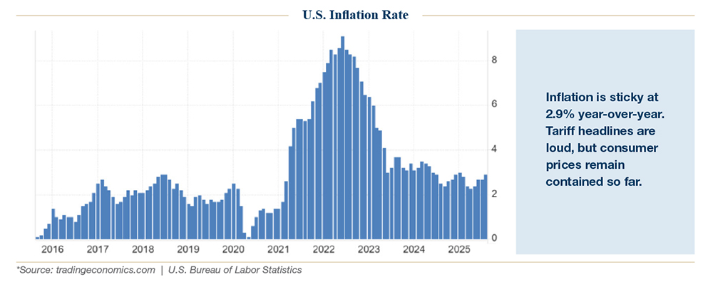 Markets may continue to climb the wall of worry, but we are prepared if conditions shift. The months ahead will test whether resilience persists or whether cracks widen. Either way, our philosophy remains the same: stay invested, stay diversified, and stay disciplined.